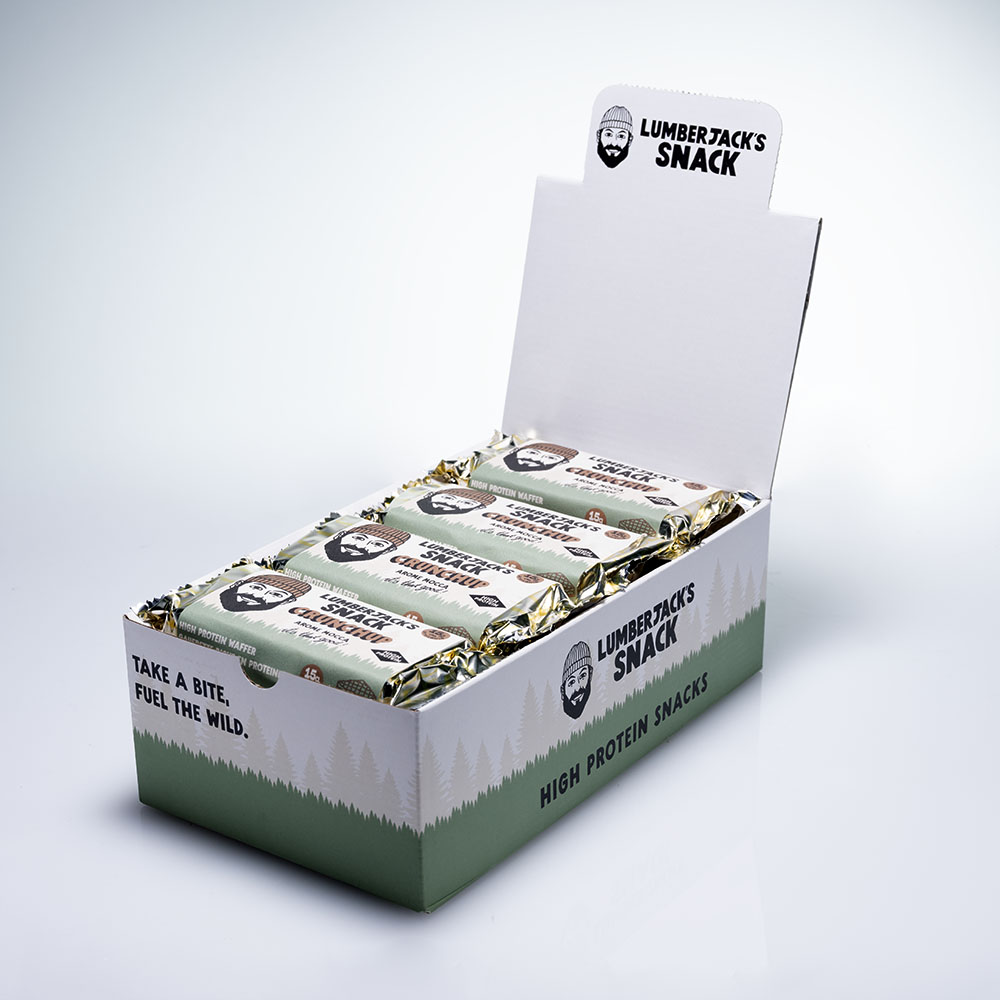 Mélange protéique (protéines laitières, gélatine hydrolysée) ; farine de blé (gluten) fortifiée (farine de blé (gluten), carbonate de calcium, fer, niacine, thiamine) ; huile de palme ; pâte de cacao ; sucre ; fructose ; beurre de cacao ; poudre de lait écrémé ; arômes ; émulsifiant : lécithine de soja ; matière grasse laitière ; protéine de pois; farine de soja ;huile de tournesol ; sel ; poudre à lever : bicarbonate de sodium ; farine de maïs.